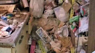 この段階になるとベッドやソファーはゴミに埋もれて注意してみないと分からなくなっています。勿論、冷蔵庫の扉は開かず、使えません。トイレ・風呂の扉は開かないか、半開きの状態です。トイレや風呂は完全に使用できなくなっています。