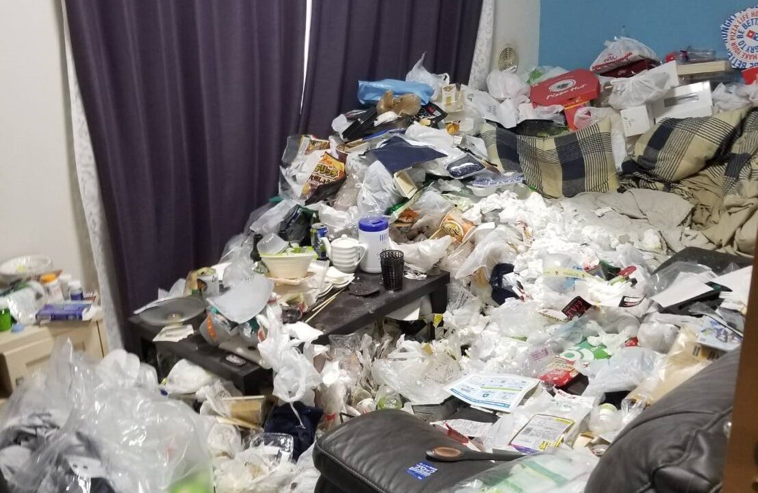 散らかっているお部屋。一般にはゴミ屋敷とは言いませんね。部屋にゴミや生活用品・雑貨・雑誌などが整理されず、散らばっている状態ので「床がちらほら見えている状況」のお部屋です。